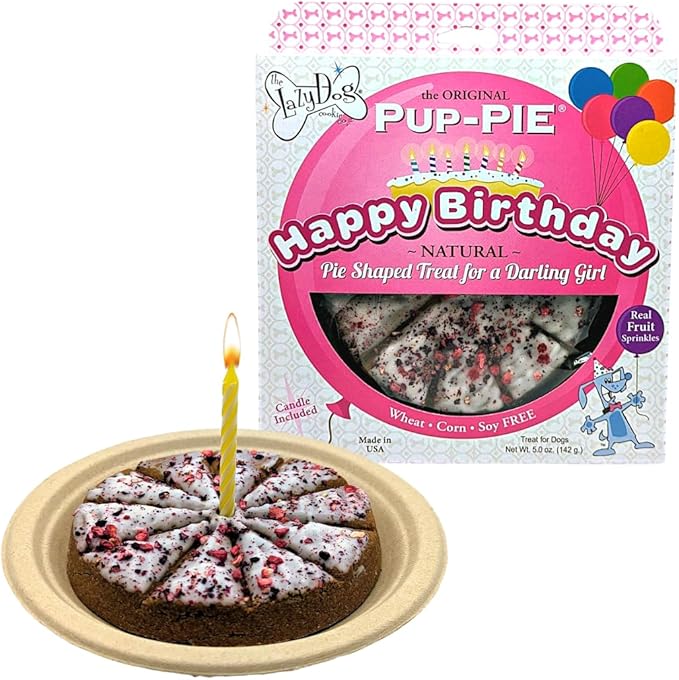 The Lazy Dog - Happy Birthday Pie Dog Treat for a Darling Girl, 6 in. 5 oz. A Great Treat for Your Special Friends Annual Celebration Day!