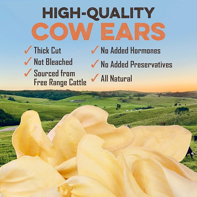 Premium Cow Ears For Dogs, Thick Cut & All-Natural Whole Ears, 100% Grass Fed Beef, No Additives Or Hormones, Safe Rawhide Alternative, Great Dog Treat Alternative To Pig Ears, Bully Sticks, Dog Bones