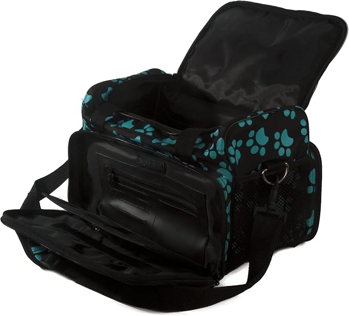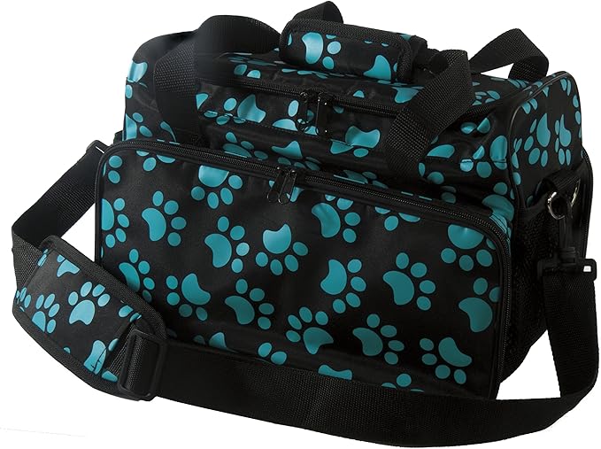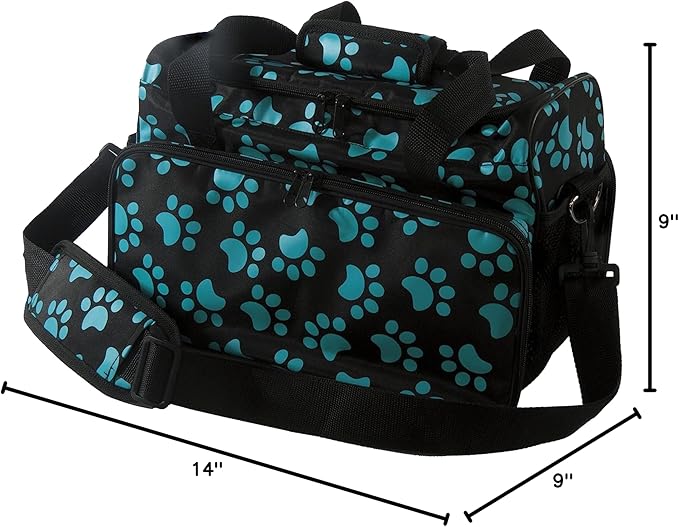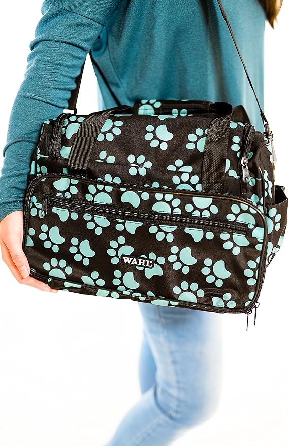 WAHL Professional Animal Travel Tote Bag with Zipper - Travel Bag - Storage Bag for Grooming Supplies - for Dog, Cat & Pet Groomers - 28.8 Inches, Turquoise Paw Print Design (#97764-300)