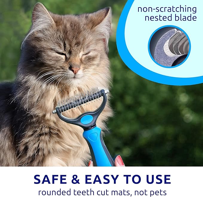 - Dual-Head Design: 2 sides, 2 coats, 1 tool! Use the 9-teeth side of this dog and cat brush for smooth dematting, and the 17-teeth side for quick coat thinning and deshedding.