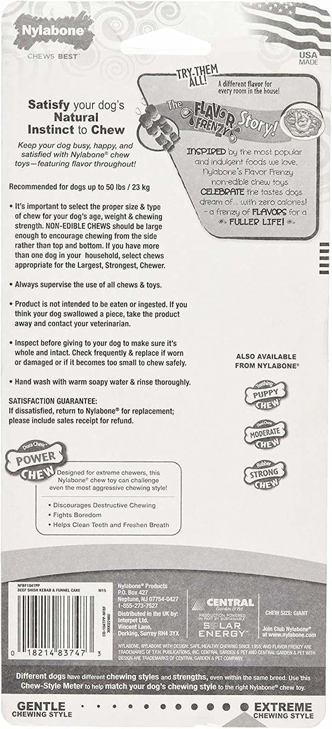 - SAVORY SHISH KABOB & FUNNEL CAKE FLAVOR - Dog chew toy features an irresistible taste throughout that dogs love