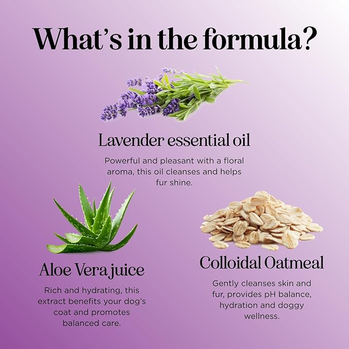 - Made for All Dogs - Whether looking for a puppy shampoo for small dogs or a gentle dog cleaner for older dogs we got you covered with our versatile oatmeal lavender dog shampoo for all dogs.