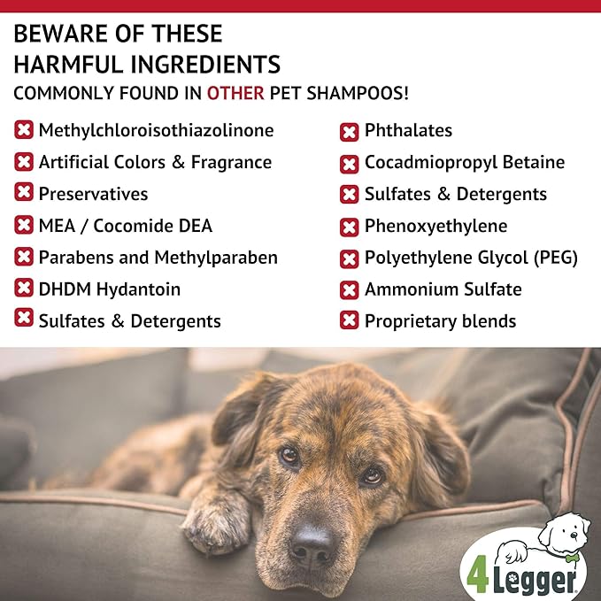 - NATURAL INGREDIENTS THAT MAKE SENSE: 4Legger organic dog shampoo is a true all natural dog shampoo handcrafted in small batches using real plants, not synthetic chemicals. Made with organic coconut oil, cedar, peppermint and eucalyptus essential oils, and soothing aloe vera ensures your pup gets clean the right way, without detergents or other harmful ingredients commonly found in other dog shampoo