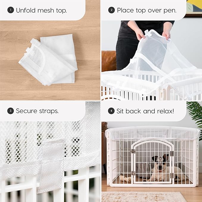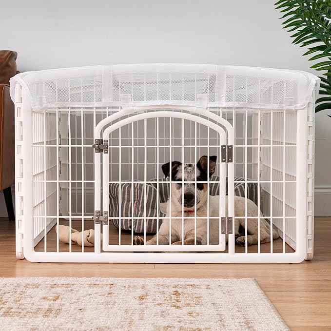 IRIS USA 24" Exercise 4-Panel Pet Playpen with Door + Mesh Top Cover for Dog Playpen, Dog Playpen, Puppy Playpen, for Small and Medium Dogs, Keep Pets Secure, Easy Assemble, Durable Material, White