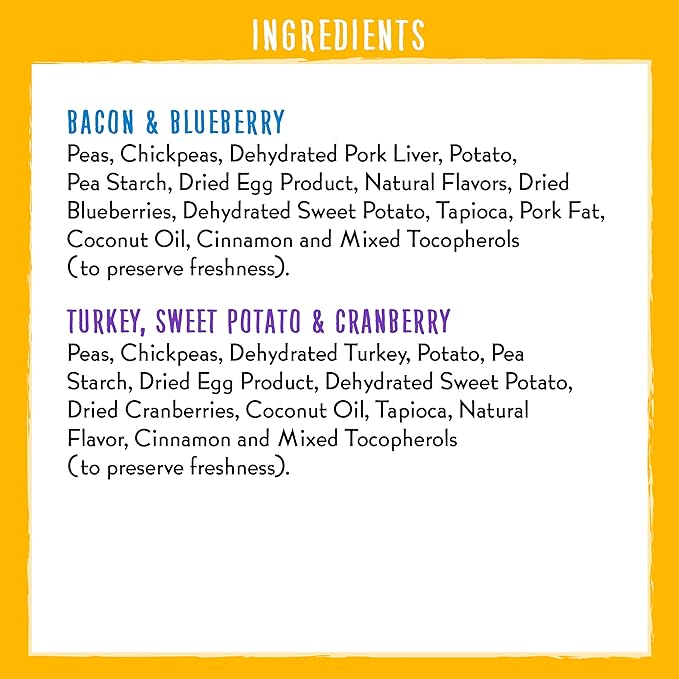 - Flavor : Bacon & Blueberry, Sweet Potato & Cranberry