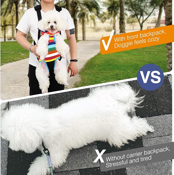 Pawaboo Pet Carrier Backpack, Adjustable Pet Front Dog Cat Carrier Backpack Travel Bag, Legs Out, Easy-Fit for Hiking Traveling Camping for Medium Small Cats Dogs Puppies, Large, Colorful Strips