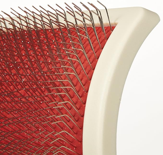 - The curved head provides a comfortable brushing experience for your pet, cushioned pins are paw-fect for gently gliding through a pal’s coat.