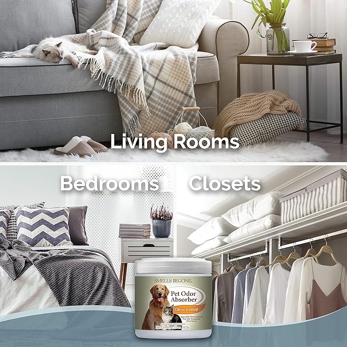 SMELLS BEGONE Air Freshener Pet Odor Absorber Gel - 15 oz, Pack of 2 - Absorbs and Eliminates Odor in Pet Areas, Bathrooms, Cars, & Boats - Made with Essential Oils - Citrus Scent