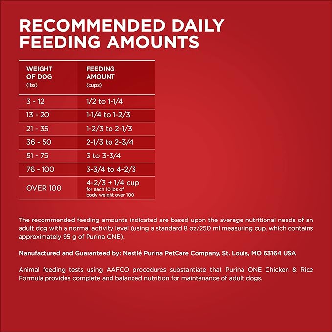- Purina ONE chicken and rice dog food offers a microbiome balance and a SmartBlend of high-quality ingredients, including prebiotic fiber for dogs, to help your pal be his best self
