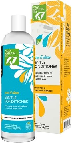 Only Natural Pet Pure and Clean Gentle Grooming Conditioner for Dogs with Shea Butter and Honey - Green Tea and Mandarin Orange Scent - 12 Fl Oz