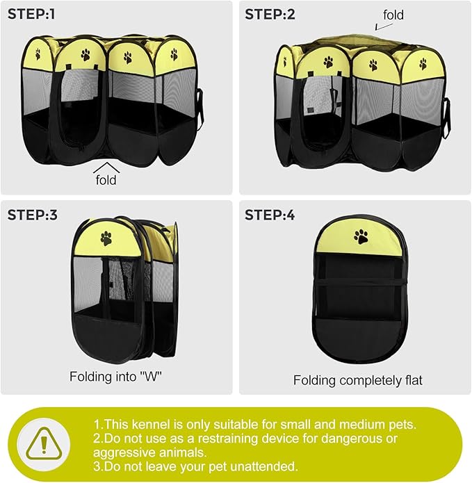 Pet Dog Puppy Playpen Dog Cat Tent Crates, Foldable Exercise Kennel Portable Playpen for Small Medium Dogs/Cats/Rabbits, Indoor Outdoor Travel Camping Use with Removable Zipper Top Green