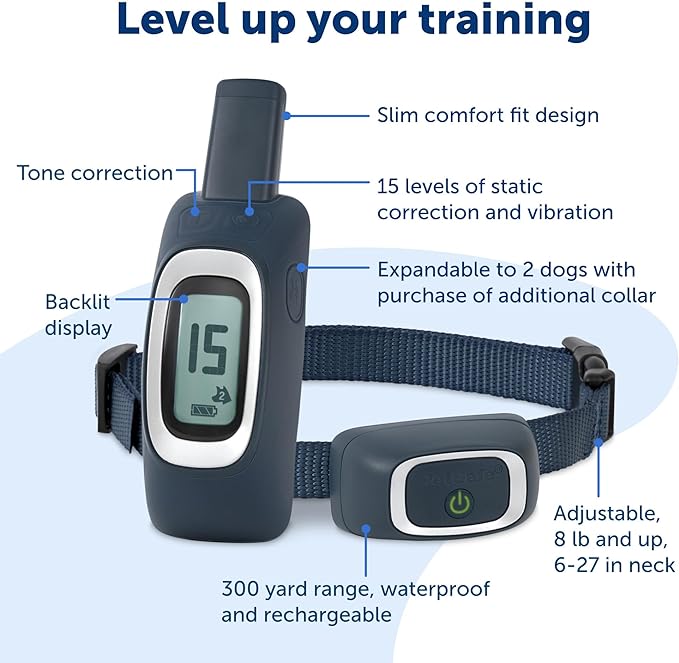 - OFF-LEASH TRAINING: Safely train and correct your pup’s unwanted behaviors the moment they happen within a 300-yard range; system can expand for use with 2 dogs with purchase of additional collar
