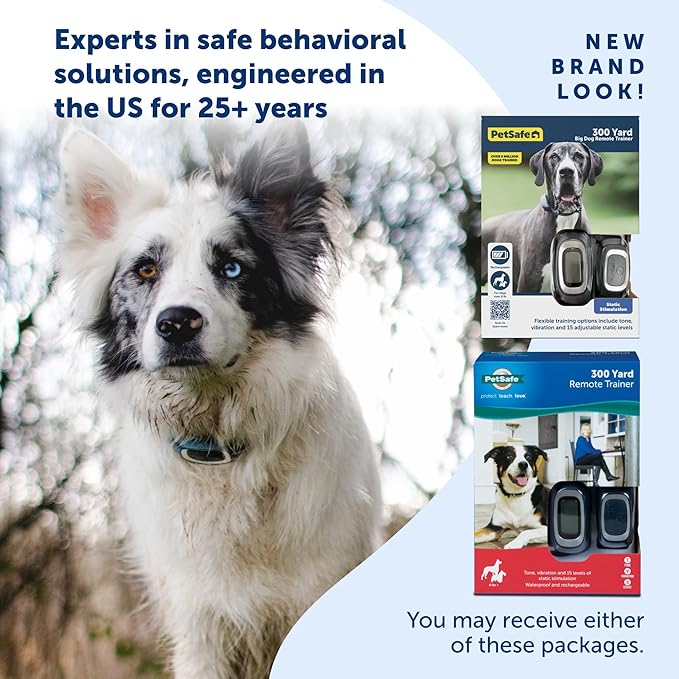 PetSafe 300 Yard Remote Training Collar – Choose from Tone, Vibration, or 15 Levels of Static Stimulation – Medium Range Option for Training Off Leash Dogs – Waterproof and Durable – Rechargeable