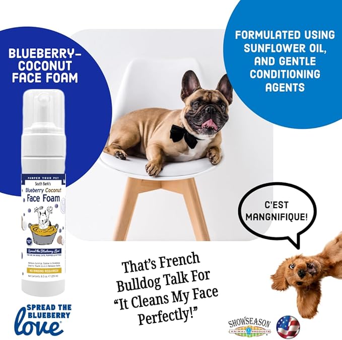 Showseason Blueberry-Coconut Pet Face Foam Cleanser for Dogs and Cats 8.5 oz. | No Rinsing Required | Easy Cleaning | Biodegradable and Non-Toxic | Made in The USA