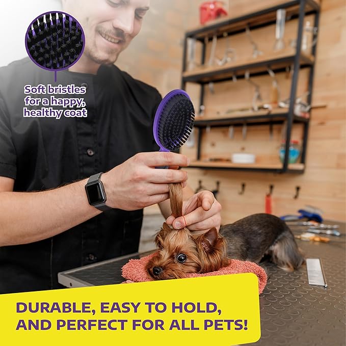 - GROOMS AND MASSAGES FOR A HEALTHY COAT - Brushing your pet occasionally with our bristle brush increases blood circulation and leaves your pet with healthy skin and a shiny topcoat.