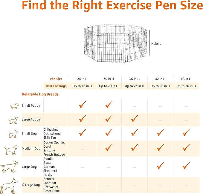 - Large 42-inch exercise play pen (no door) for dogs up to 26 inches tall or for other small pets