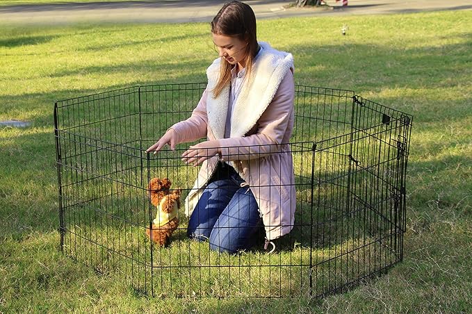 PEEKABOO Dog Pen Pet Playpen Dog Fence Indoor Foldable Metal Wire Exercise Puppy Play Yard Pet Enclosure Outdoor 8 Panels 24 Inch (Only Black playpen)