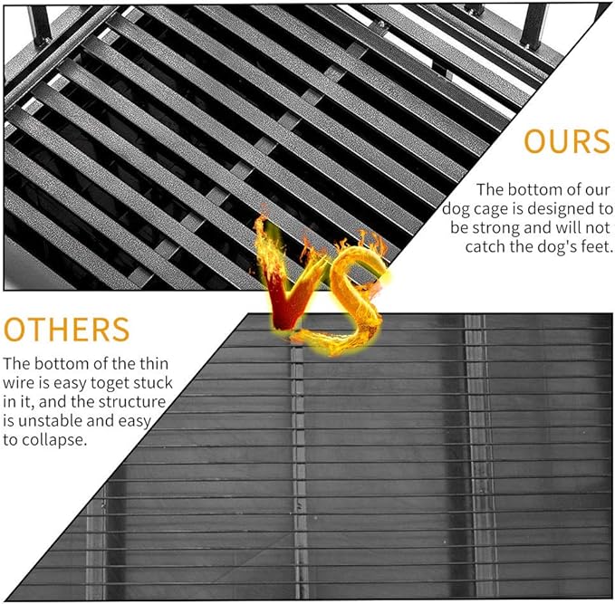 - Heavy duty frame: made from industrial corrosion-resistant steel, indestructible and durable, hard to be damaged, nontoxic finished surface keep your dog health, suitable for most medium and large dogs, two locks with the safety buckles to prevent the high anxiety dogs from opening the door and escaping.