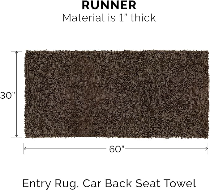 - PRODUCT DETAILS: Mud (Brown); Runner, 60" x 30" x 1".AVAILABLE VARIANTS: The bed comes in Mud (Brown), Sand, Blue, and Charcoal (Gray); it's also available in Small, Medium, Large, Extra Large, Runner, and Jumbo Plus.EASY CARE: The dog towel mat is completely machine washable for your convenience; for more specific washing instructions, please refer to the hang tag and/or seam label (if applicable).