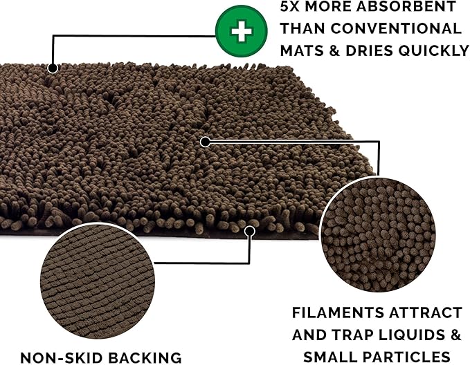 - MULTIPURPOSE: The rug's collection of highly absorbent, cuddly soft microfiber chenille filaments make it an ideal choice for a floor mat, door mat, food mat, sleeping bed mat, and furniture cover; it's also great for toweling off wet and dirty pups