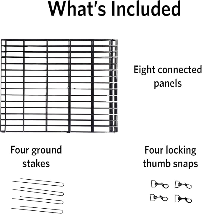 - Easy set-up & no tools required for assembly. Exercise Pen includes 1 year manufacturer's warranty; Not Recommended for Puppies or Dogs That Jump
