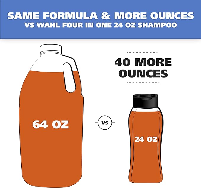 - Less is More - Wahl has a higher concentrate of a coconut-derived sodding agent, which means you don’t have to use as much as other dog shampoos. A little shampoo goes a long way and provides a rich lather that’s easy to rinse off