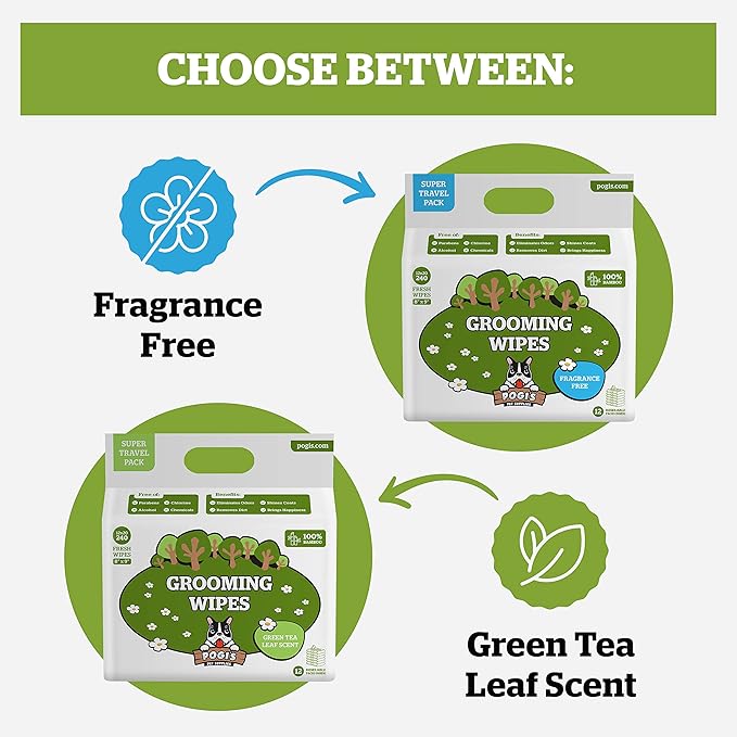 Pogi’s Dog Wipes Travel Packs – Hypoallergenic Pet Wipes for Paws, Body & Butt – Cleaning & Hydrating, Green Tea Scent, 240-Count