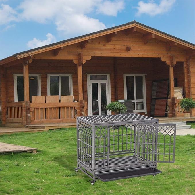 - 【Size and Aftersales】 38"L X 26"W X 32"H, Dark Silver.The height of the dog cage with wheels is 31.5 inches, and the internal height is 25.6 inches. Suitable for most large dogs, perfect for indoor and outdoor use. If any quality problem within 3 years, please contact us. We will provide with the most satisfactory solution!
