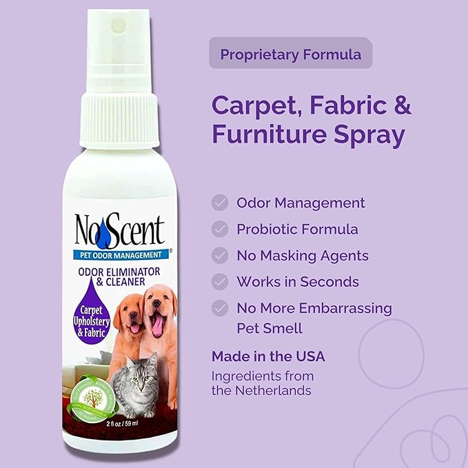 - Fabric Freshener: Don't be embarrassed by the inevitable pet smell associated with your animal family ~ Treat your environment instead with No Scent and enjoy your time with friends and visitors; No Scent is perfect for use on upholstered furniture, bedding, draperies, curtains, clothing, auto interiors & car fabric: