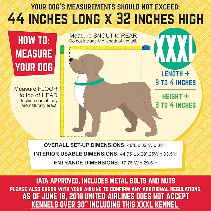 - Your dog?™s measurements should be under 44??L x 33??H for 3X-Large kennel