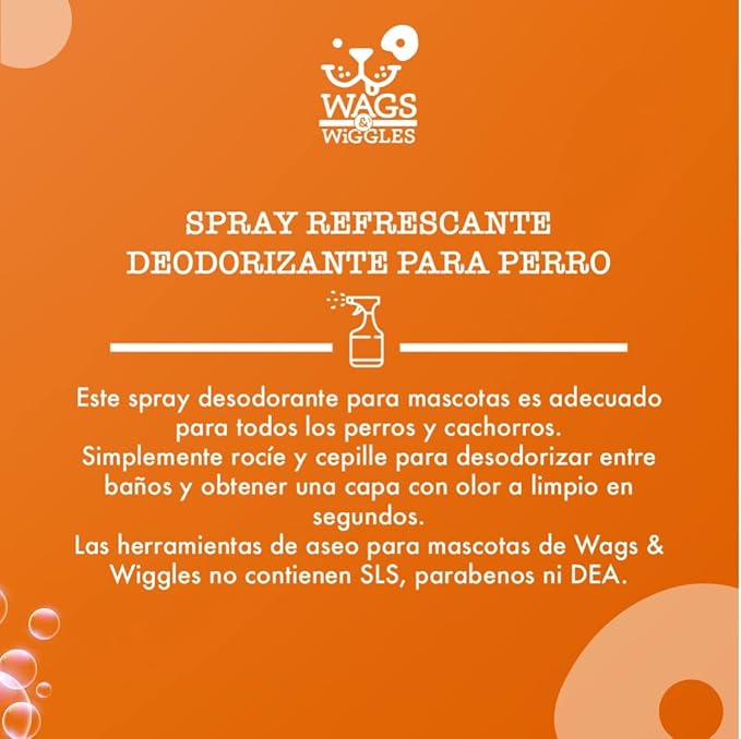 - DEODORIZES AND FRESHENS — Wags & Wiggles Refresh Deodorizing Spray cleans, softens, and deodorizes your dog's skin and coat to leave them smelling fresh