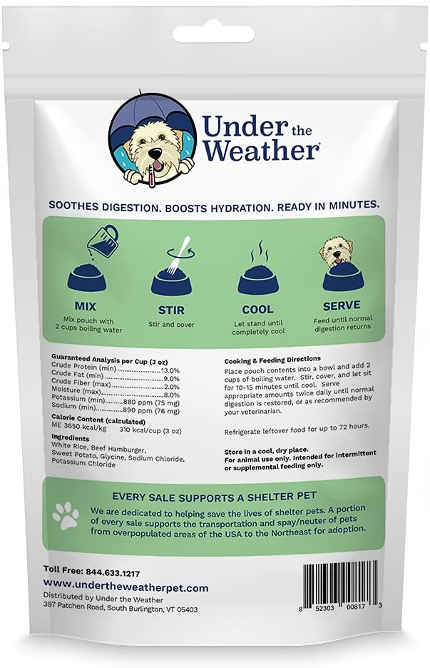Under the Weather Bland Diet for Dogs | Easy to Digest for Sick Dogs |Always Be Ready| Contains Electrolytes - Natural Freeze Dried 100% Human Grade Meats| 1 Pack- Rice, Hamburger & Sweet Potato - 6oz