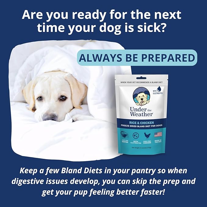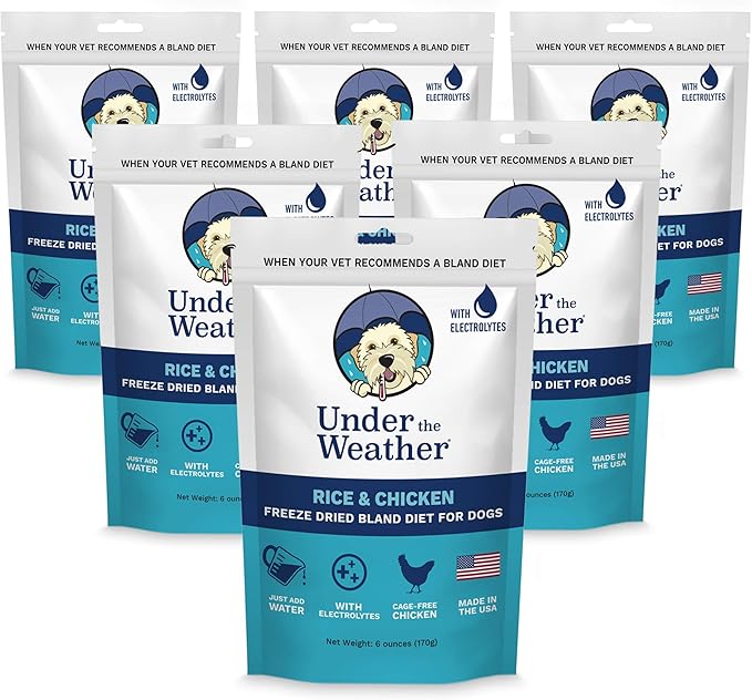Under the Weather Bland Diet for Dogs | Easy to Digest for Sick Dogs | Always Be Ready | Contains Electrolytes - All Natural Freeze Dried 100% Human Grade Meats | 6 Pack - Chicken, Rice - 6oz
