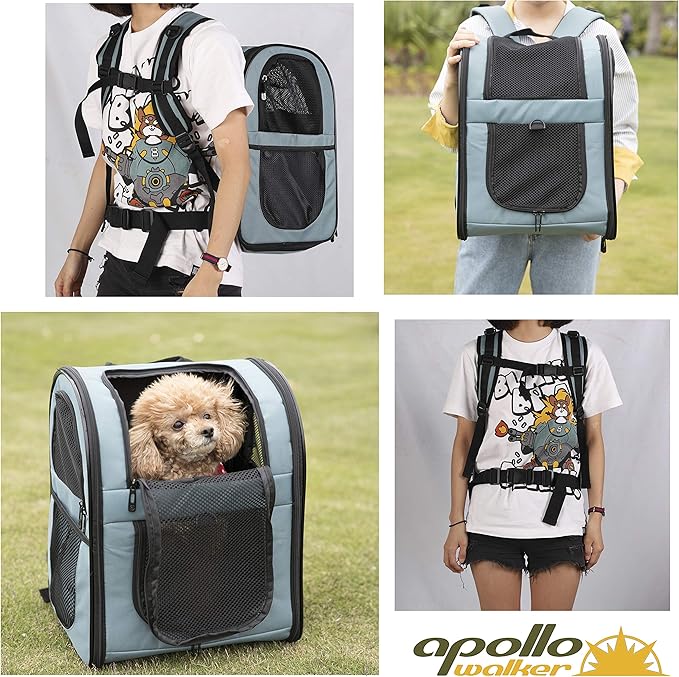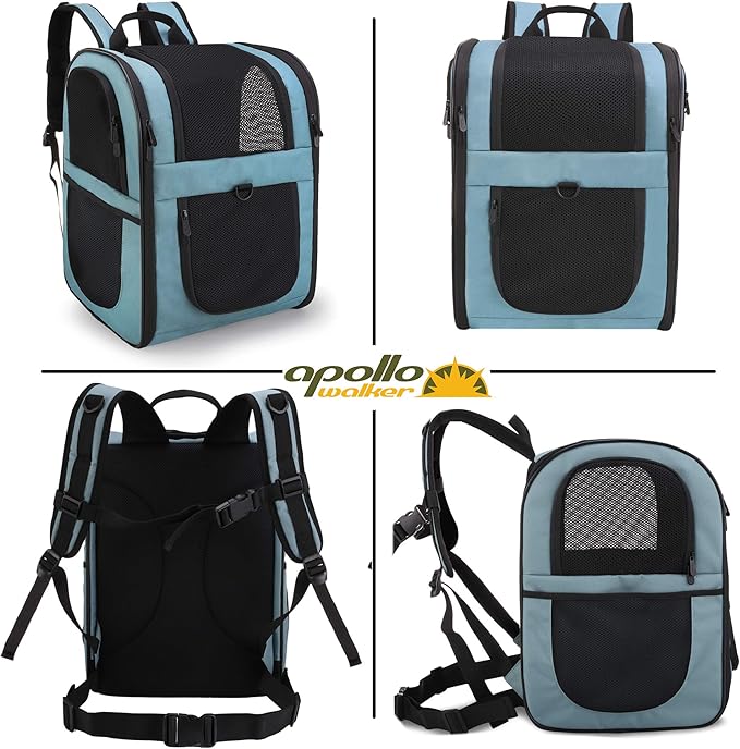 - ESCAPE PROOF- The last thing you want is an escaped pet running around the airplane cabin or outdoors. APOLLO WALKER pet backback carrier keeps your pet safe and secure while flying, walking, cycling, or hiking with claw-proof mesh and reinforced zippers. Carrier also has a leash tether to attach to your dog or cat’s collar if you decide to open the top window to let your pet stick their head out.