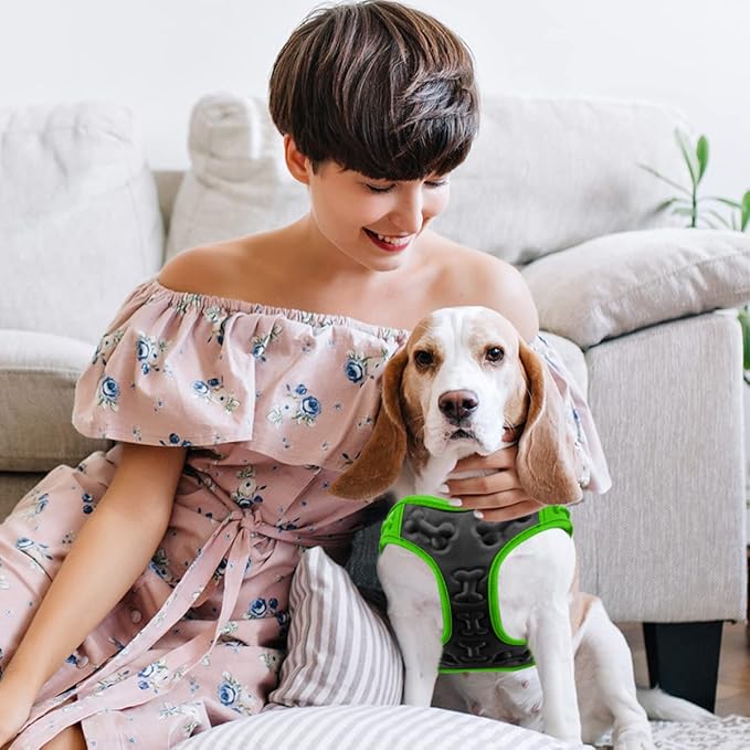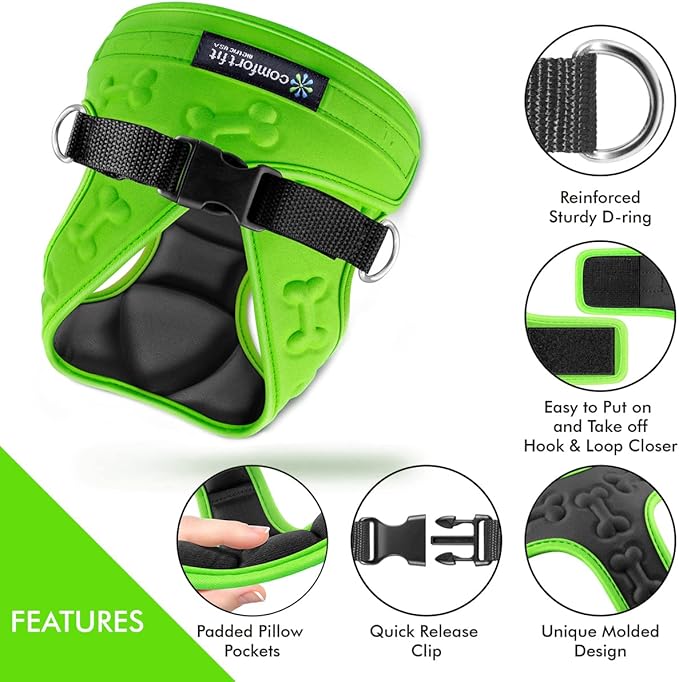 Comfort fit Cold Weather Dog Harness - Adjustable Dog Harness Small Sized Dog Medium Sized Dogs - Ideal as Easy Walk Dog Vest Harnesses (Neon Green, Chest Size 12" - 14")