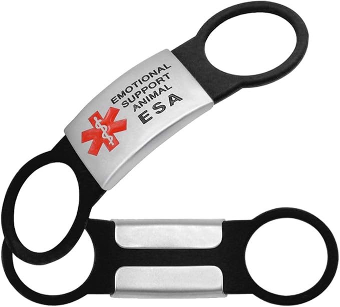 Dog Tag for Collar Necklace Stainless Steel Dog Cat Pet ID Tags Pendant ESA Emotional Support with Rubber Dog Accessories Black L