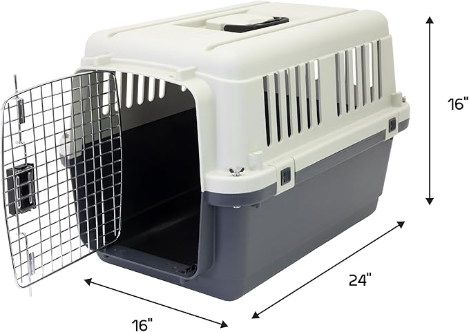 SportPet Designs Plastic Kennels Rolling Plastic Wire Door Travel Dog Crate - Small - No Wheel, Tan