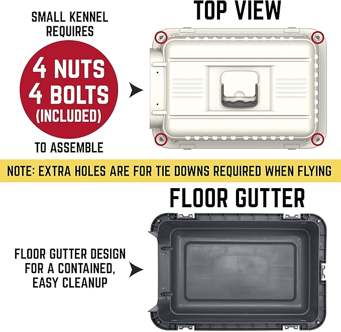 - Sturdy durable plastic construction very easy to assemble. Tie down holes for bungees required by airlines
