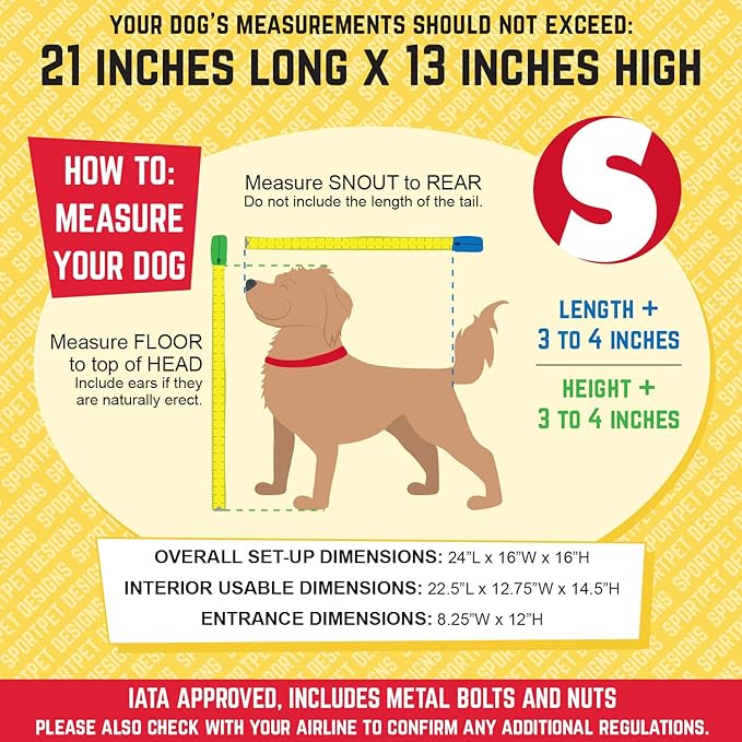 - Your dog's measurements should be under 21" L x 13" H for small kennel