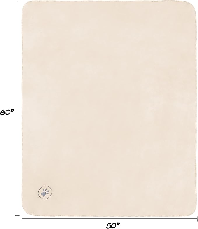 - PRODUCT DETAILS - Materials: Polyester 250GSM Flannel, PU Water-Resistant Coating, and 230GSM Sherpa Polyester Fleece. Dimensions: (L) 60” x (W) 50” x (H) 0.25”. Color: Cream with Embroidered Paw Design.