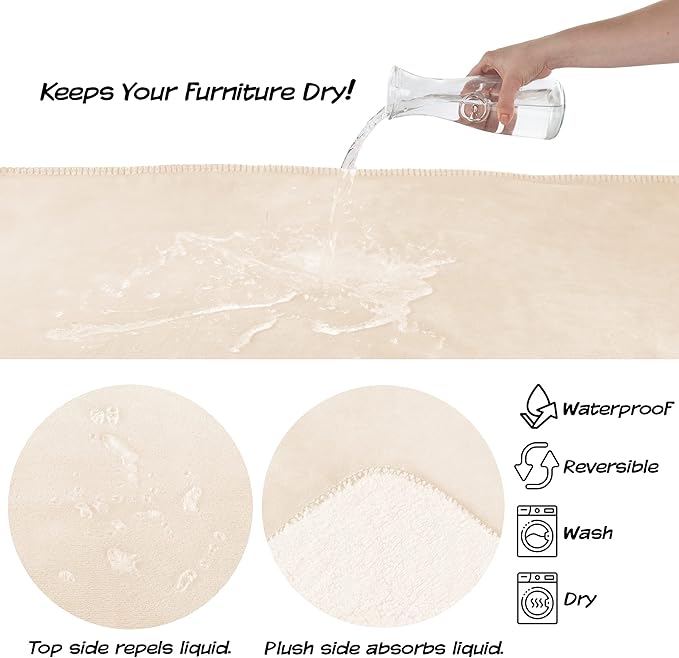 PETMAKER Waterproof Pet Blanket - 50x60-Inch Reversible Sherpa Fleece Throw Protects Couches, Cars, and Beds from Spills, Stains, and Fur (Cream)