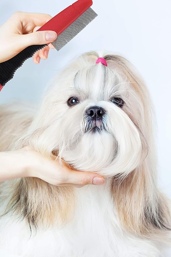 - 🐎STEEL TOOTH COMB - strong steel bristles spaced tightly together remove even the toughest knots and mat from pet fur. This fine tooth pet comb will ensure that all hair is brushed neatly in place without any loose hair, fleas, ticks or dirt of any kind.