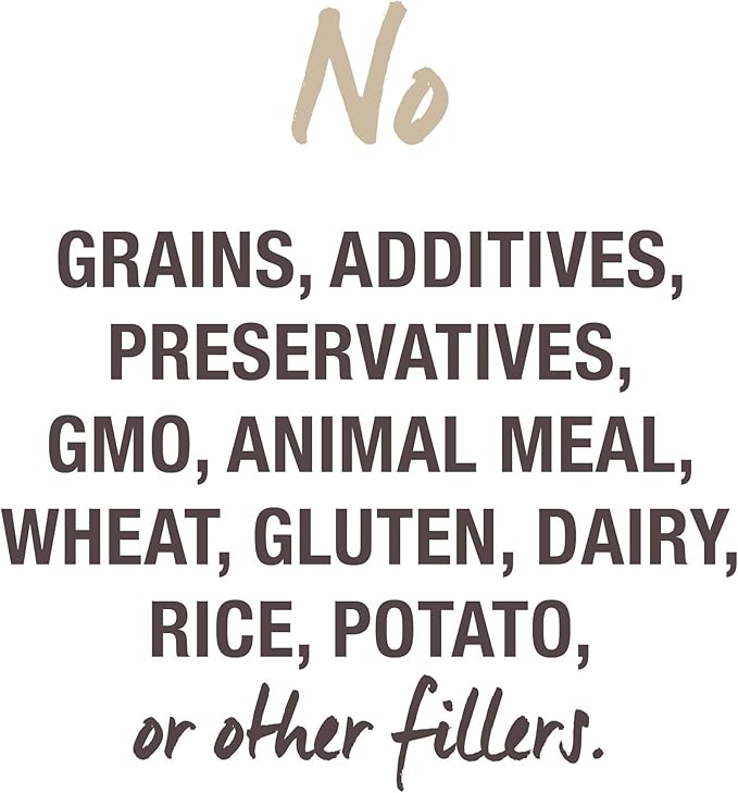 - Made without grain, wheat, gluten, GMO, ingredients, corn, soy, cereals, dairy, dairy, rice, potato and all other fillers