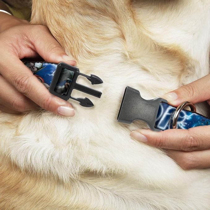 Dog Collar Plastic Clip Avengers Thor Hammer Action Pose Galaxy Blues White 9 to 15 Inches 0.5 Inch Wide