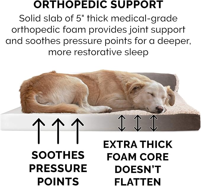 - EASY ON JOINTS: The dense and sturdy solid orthopedic foam base provides superior comfort and greater support for dog breeds of all sizes; fluff-filled bolsters support the neck, back, hips, and joints to help ease discomfort and promote restful sleep