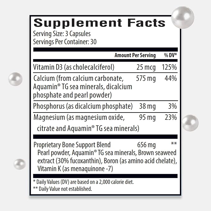 - 🦴 Transition from worrisome bone strength to a healthier state with pearl calcium - 3.5 times more absorbable than regular calcium supplements, 72 bone-building mineral-rich Icelandic marine algae calcium, and Japanese brown seaweed extract.