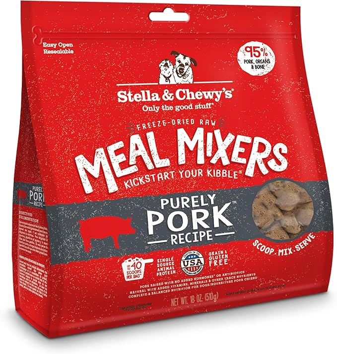 Stella & Chewy's Freeze Dried Raw Purely Pork Meal Mixer – Dog Food Topper for Small & Large Breeds – Grain Free, Protein Rich Recipe – 18 oz Bag