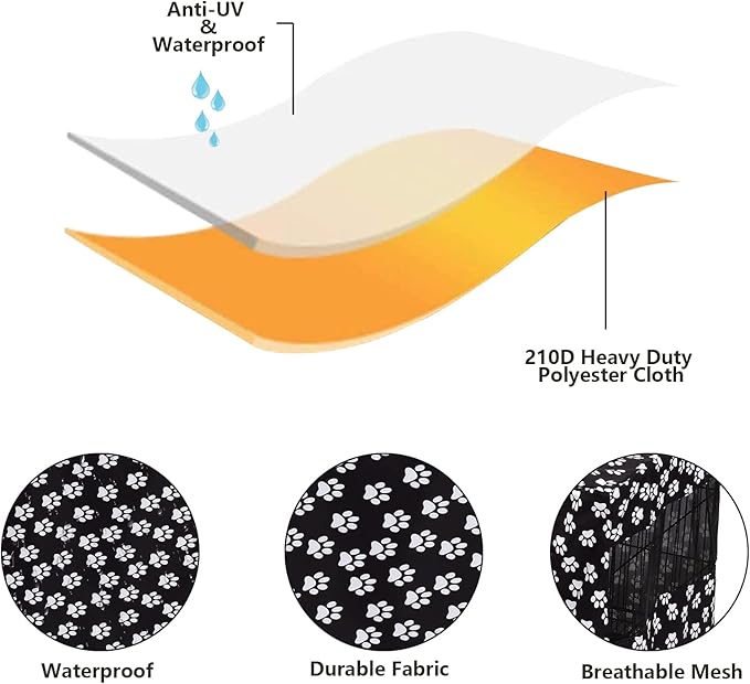 Dog Crate Cover Kennel Dogs Covers fits Small Medium Large crates cage Heavy Nylon Waterproof soundproof Indoor Outdoor - Cover only - Black paw - 30 inch