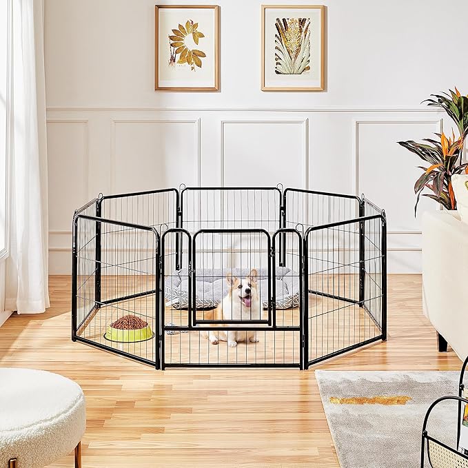 Yaheetech Dog Playpen Outdoor, 24 inch 8 Panels Dog Pen Indoor Heavy Duty Puppy Exercise Pen Metal Pet Fence for RV Camping/Yard/Garden