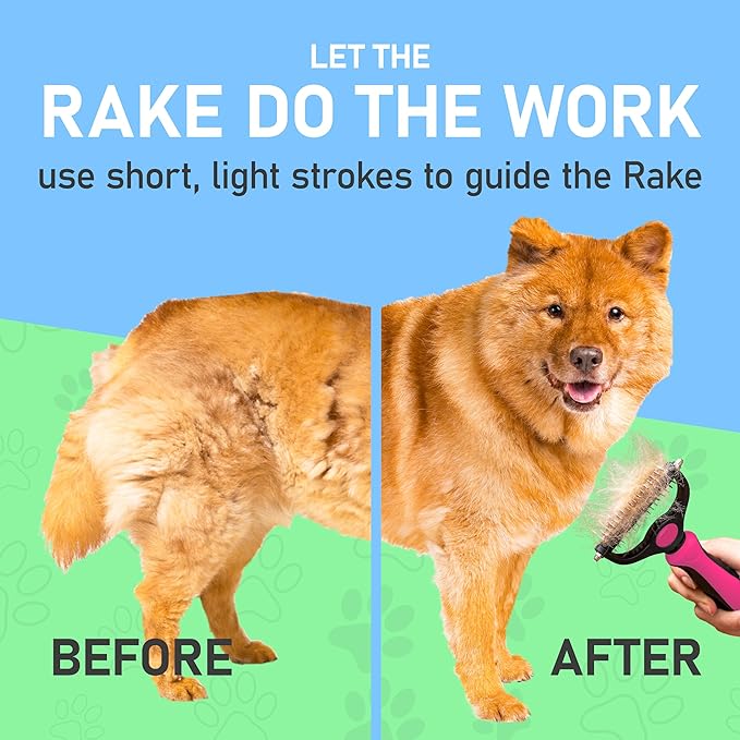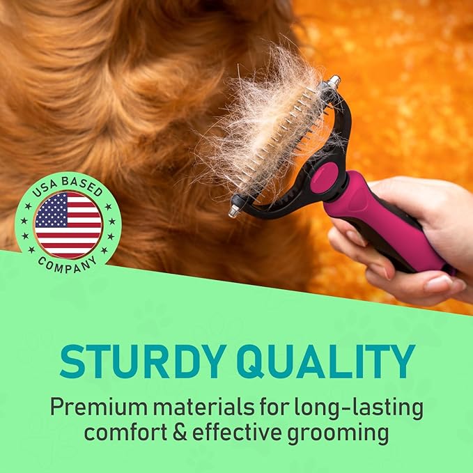 - EFFECTIVE DESHEDDING TOOL: Our dematting and deshedding tool gently removes loose hair and eliminates tangles, knots, dander, and trapped dirt. The perfect cat brush or dog grooming brush solution for pets with thick fur or dense double coats.